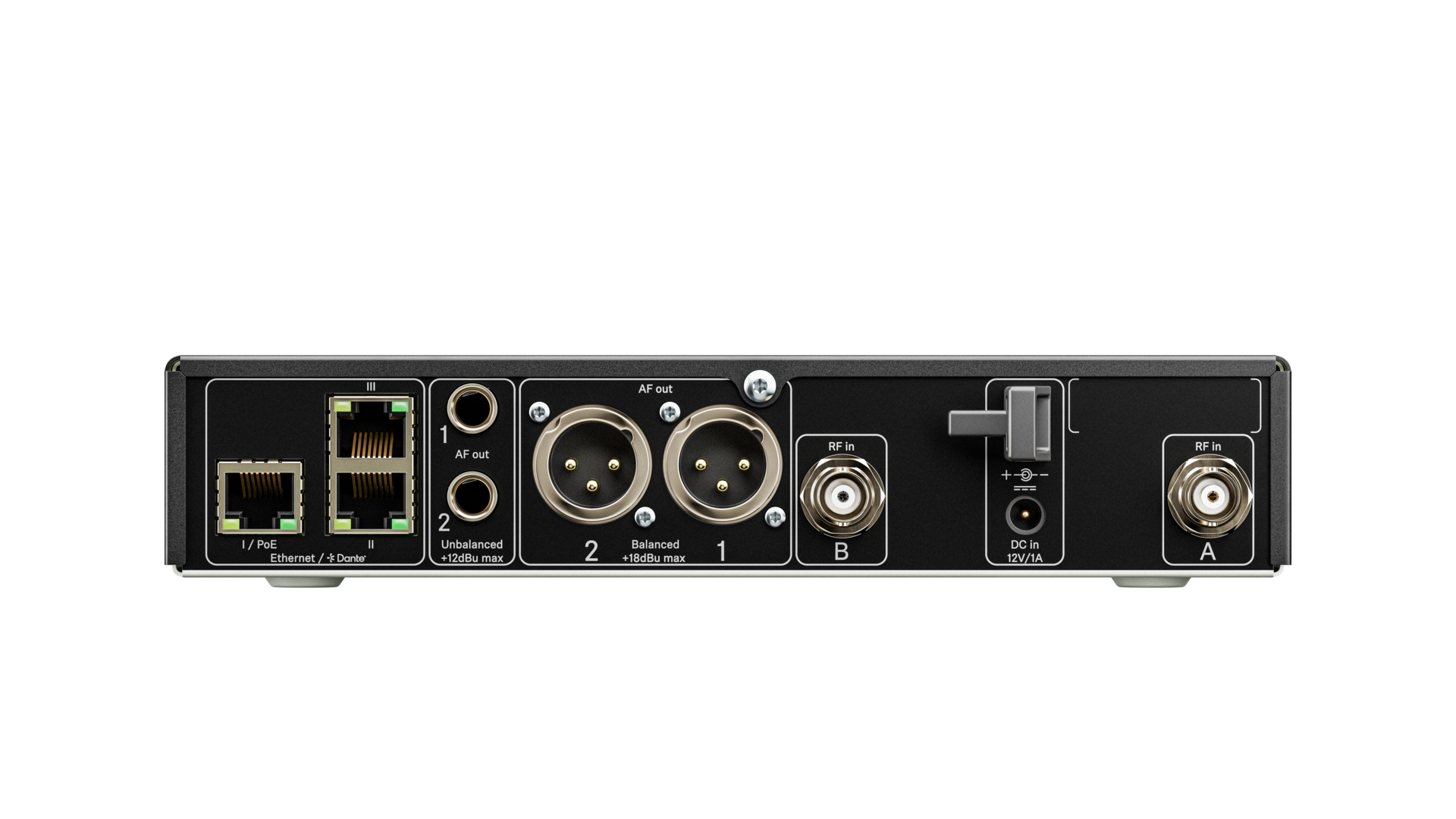 - 141 dB input dynamic range - no need to set gain on your wireless transmitters at all, thanks to proprietary Sennheiser Performance Audio Codec (SePAC)