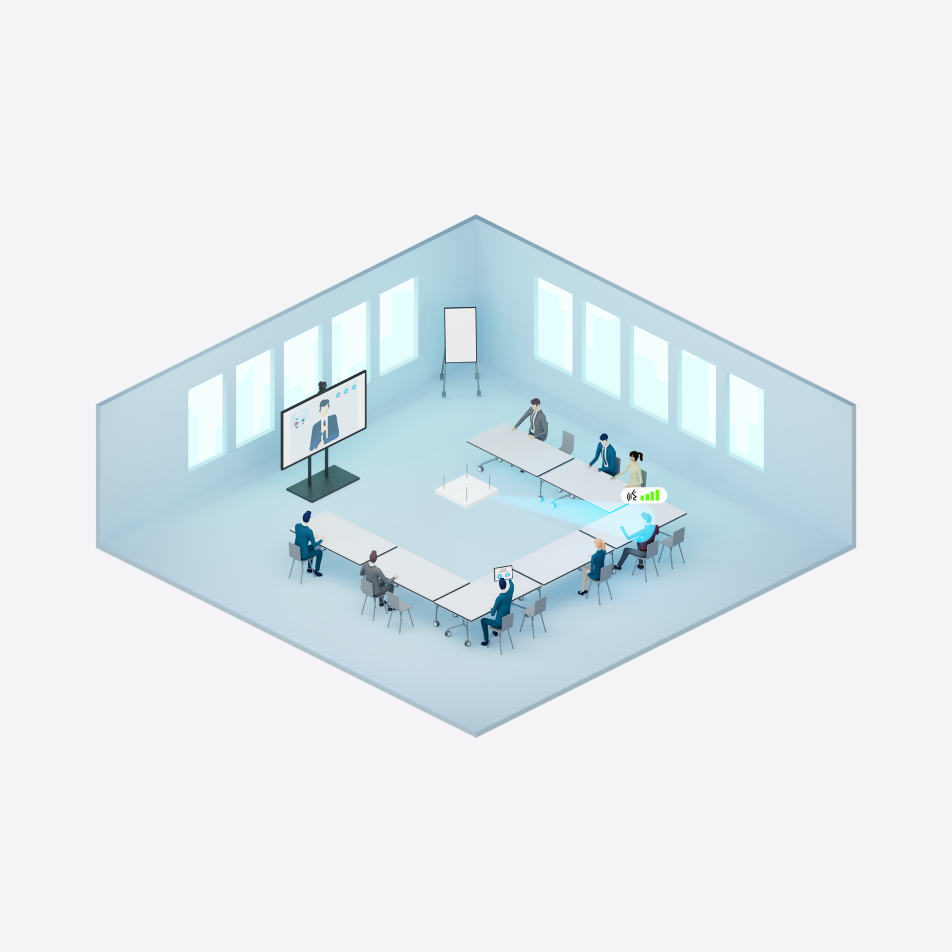 As room sizes increase, it becomes more challenging for remote participants to feel included. Sennheiser and Crestron's solutions address this issue by enabling the use of multiple cameras and precision audio to provide enhanced, natural coverage. These solutions remove the need for complex programming and ensure a user-friendly in-room experience.