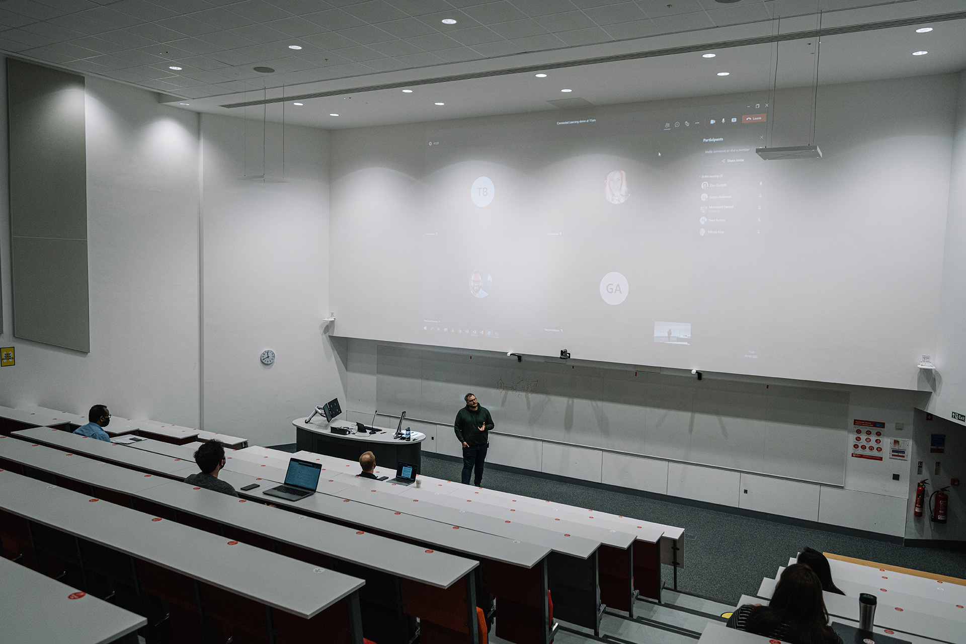 The solution implemented by Pure AV and the University’s Learning & Teaching Support Division ensures that the traditional, familiar tools of the lecture theatre remain a fully accessible part of the teaching experience, whether running in-person, pre-recording or live hybrid classes over a range of lecture capture and live collaboration platforms. In addition, the system adds the ability to capture and live stream interactions between the lecturer and audience, including audience voice and video which dramatically enhanced the remote and recorded experience.