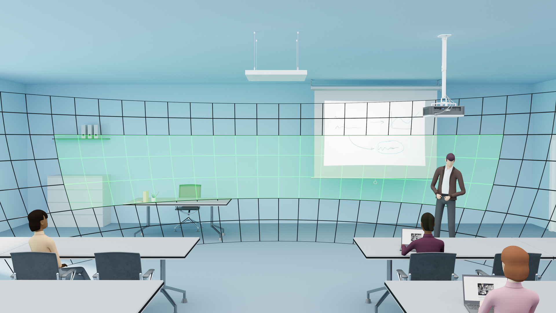 The beamforming technology enables perfect speech intelligibility and acoustics in medium-sized and large rooms. Whether you want to use the voice amplification in the entire room or only in a certain area – thanks to the flexible beamforming, speakers can move around freely without having to carry a microphone. This enables uncomplicated and quick switches between speakers and offers the freedom to use a room acoustically for different scenarios, for example as a meeting room, lecture hall or for a video conference. Thanks to the possibility of defining restricted zones, disturbing background noises, for example from devices, can simply be masked out, which increases speech intelligibility. All functions can be conveniently controlled at any time with the supplied Sennheiser Control Cockpit.