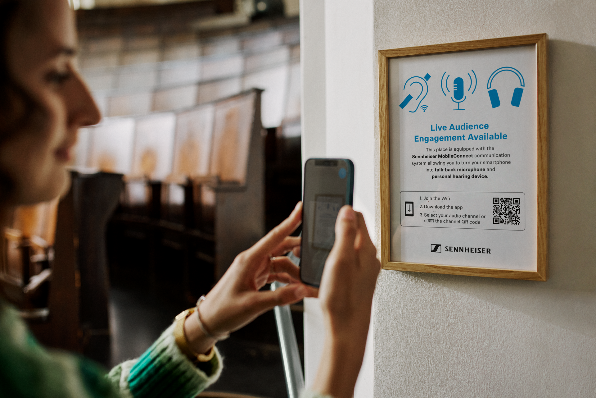 Additionally, MobileConnect's assistive listening capabilities and Audience Mic connect you and your entire audience with the live audience engagement feature, allowing for real-time feedback and interaction, creating a more dynamic and engaging meeting environment.
