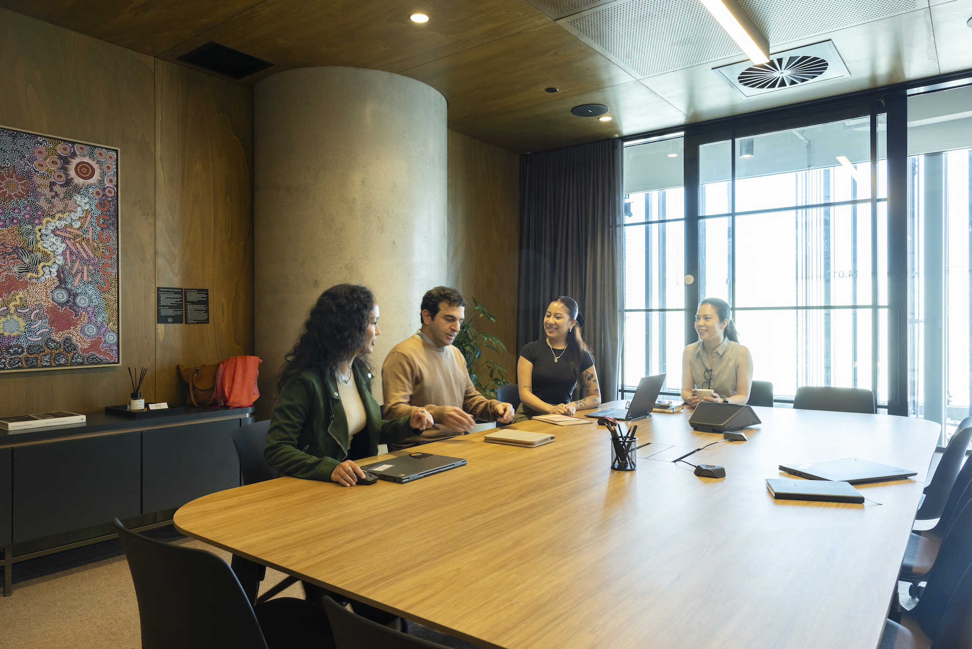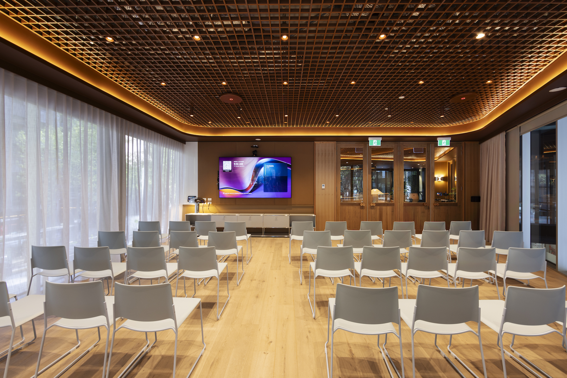Camden Webb: “From a technology perspective, flexibility was a key focus, especially for the larger rooms. Traditionally, when AV equipment is placed on or under tables, it limits how the furniture – and, consequently, the space – can be used. We designed the 181 William St rooms to function seamlessly while allowing for that flexibility. Whether the room is set up in theatre style, boardroom style, or workshop style, users still receive the same high-quality experience.