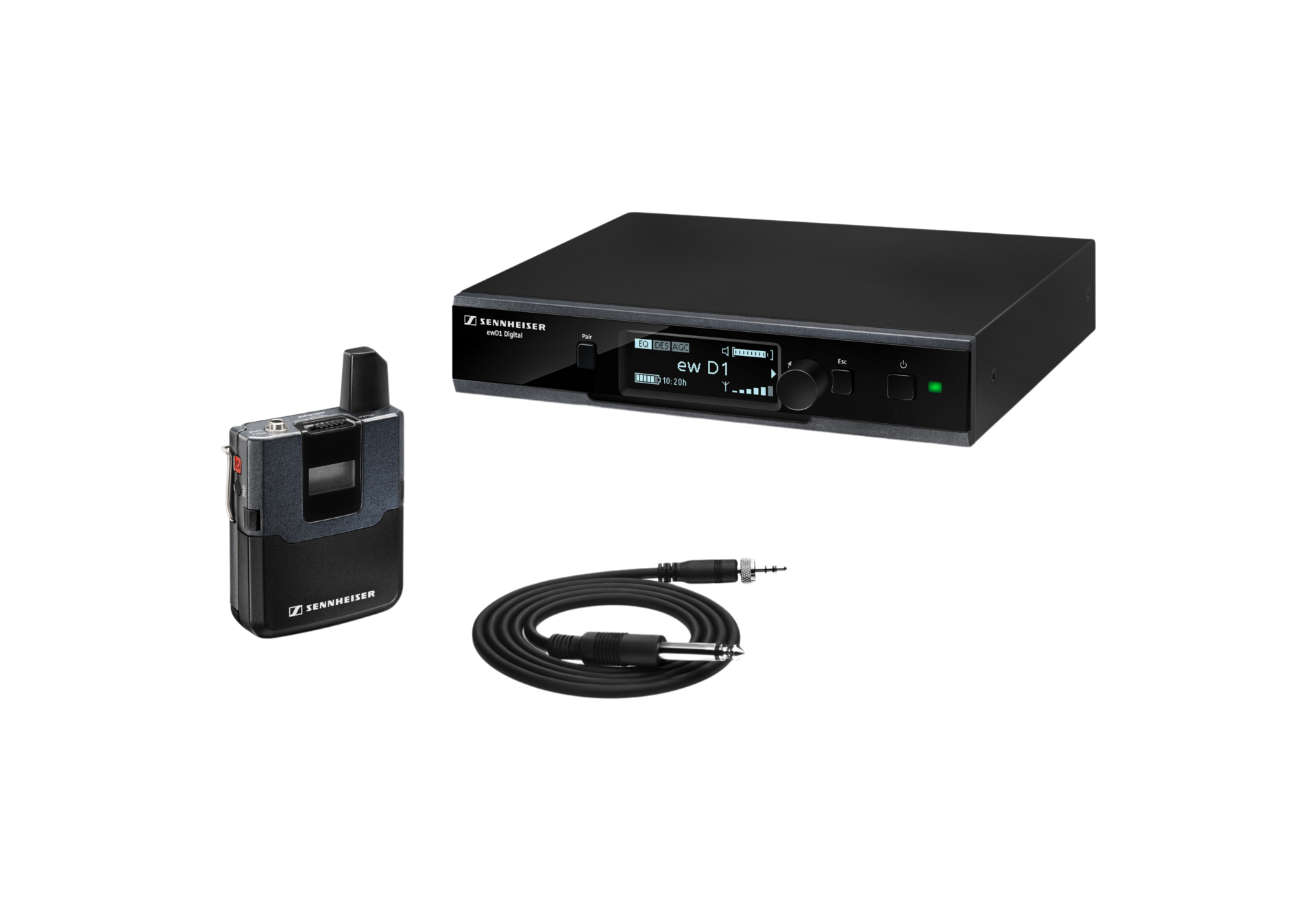 - Lightweight bodypack transmitter, robust guitar cable included