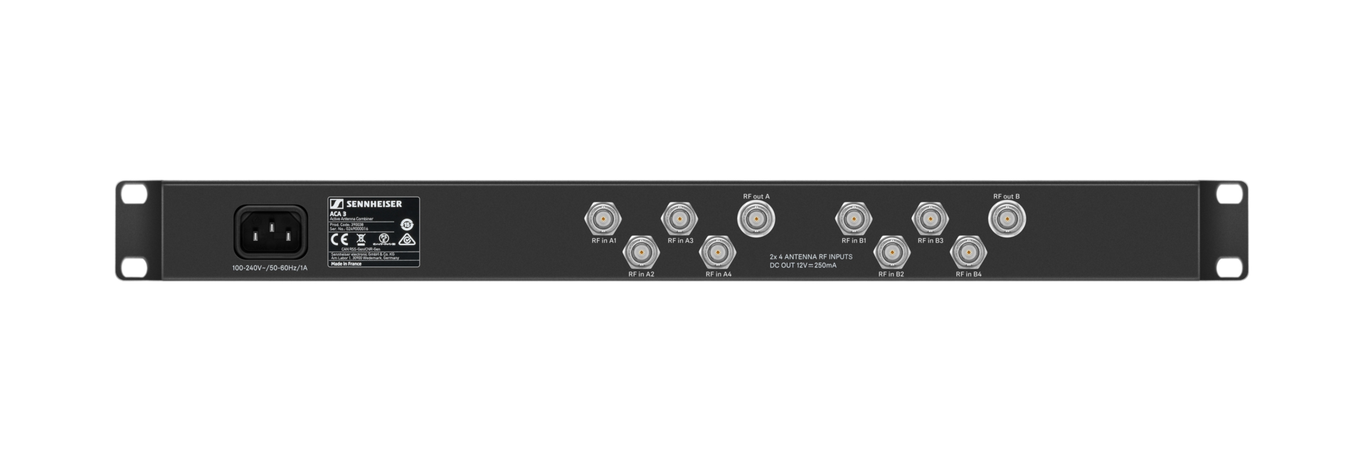 - LEDs indicate input state; RF on, DC on and DC current overload (e.g. faulty ‘short circuit‘ antenna cable)